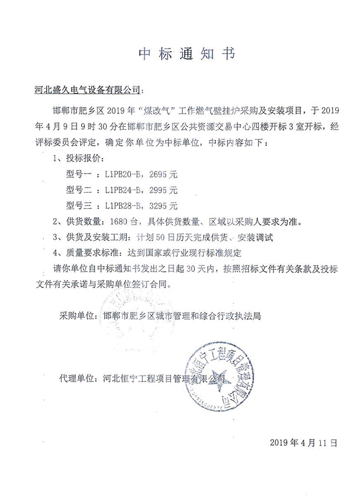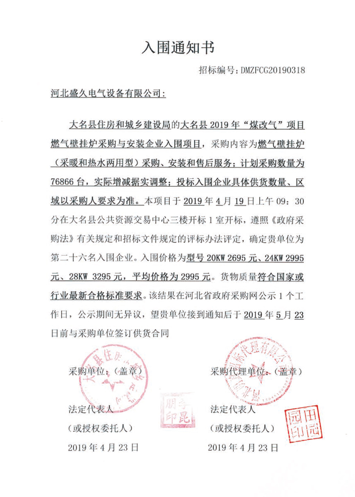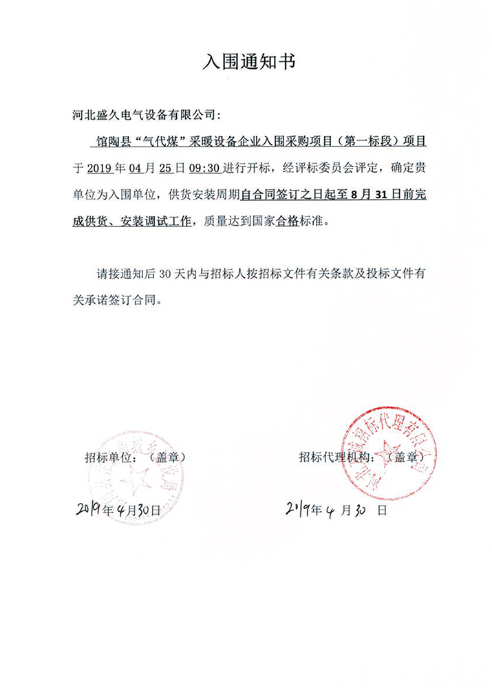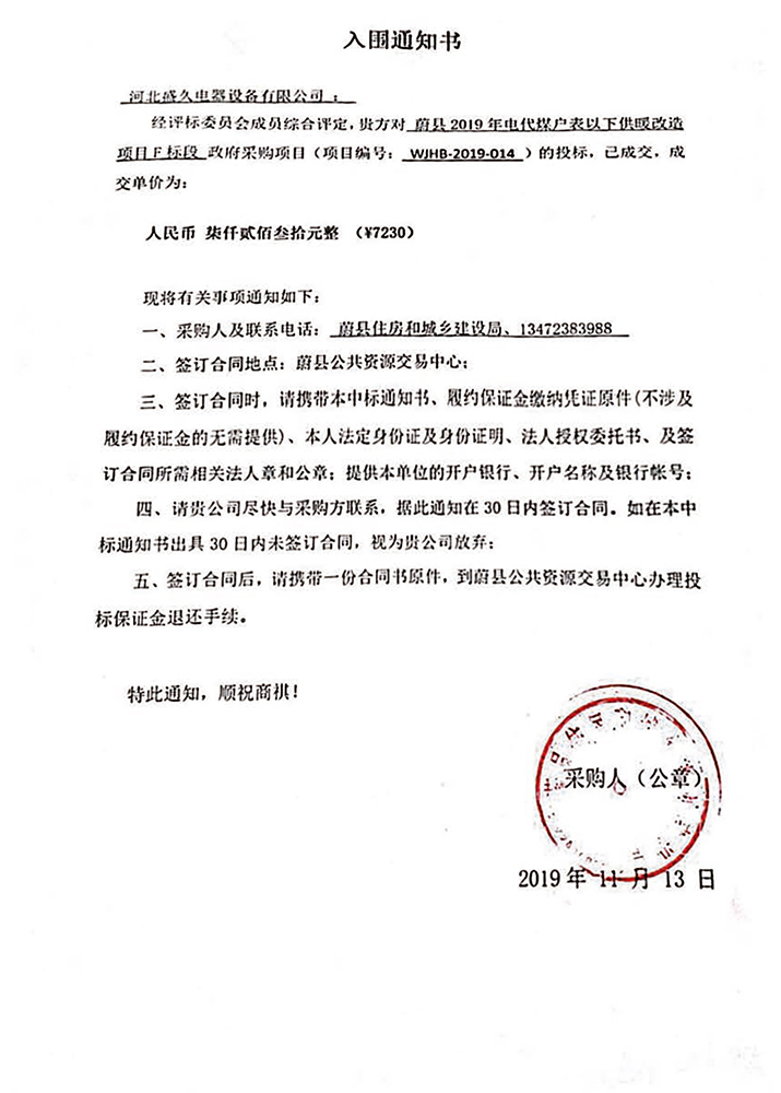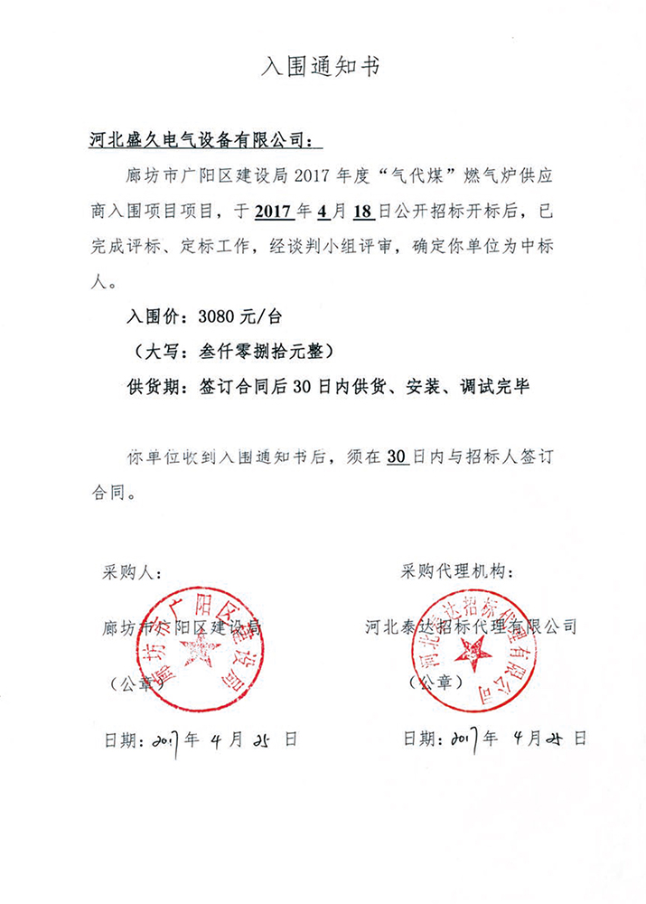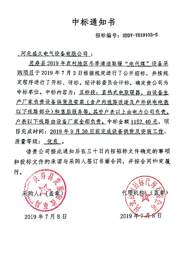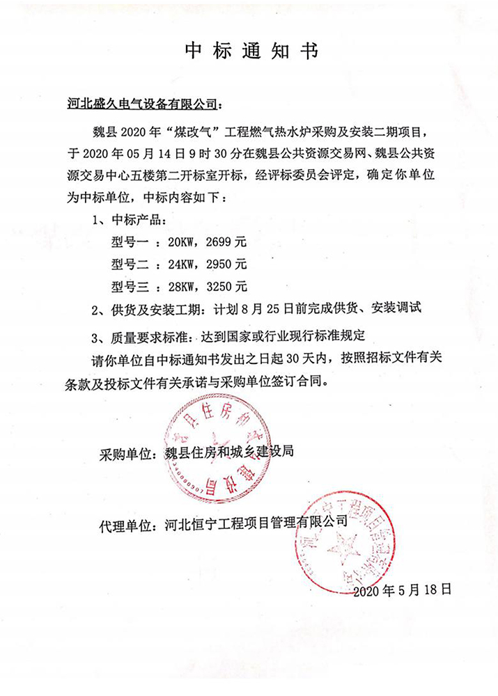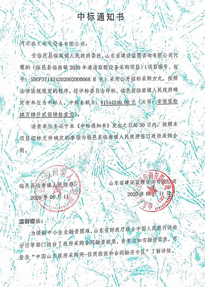 已连续中标河北、天津、北京、山东、河南、